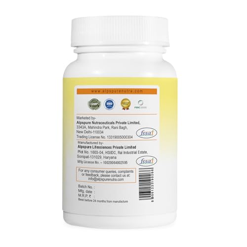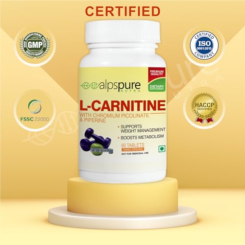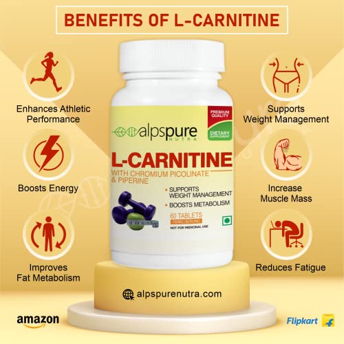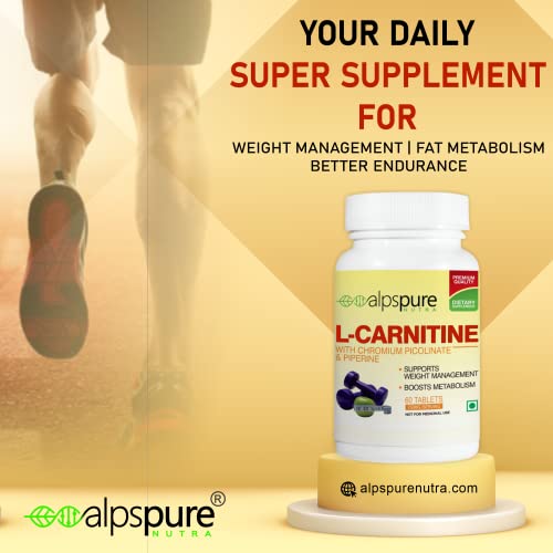 Alpspure Nutra L-Carnitine Tablets with Chromium Picolinate, Piperine | For Men & Women | Pre Workout Supplement |Supports Weight Management, Boosts Metabolism - 60 Tablets