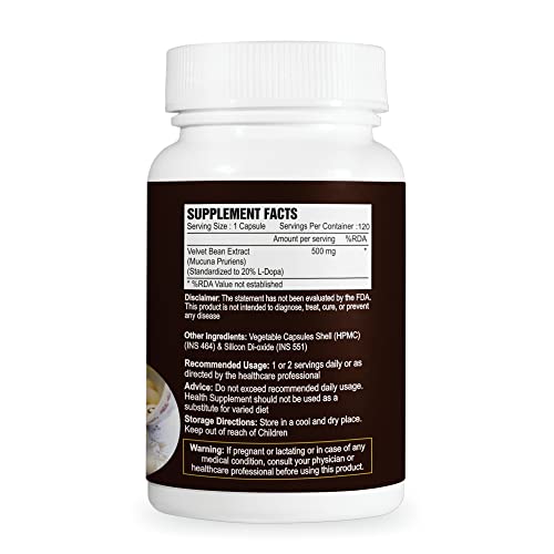Each serving gives you 500 mg of mucuna extract standardized to 20% natural l-dopa.; from the trusted nutrition experts: alpspure nutra mucuna extract veg capsules are a product of dedication to quality consistency and scientific research to make nutritio
