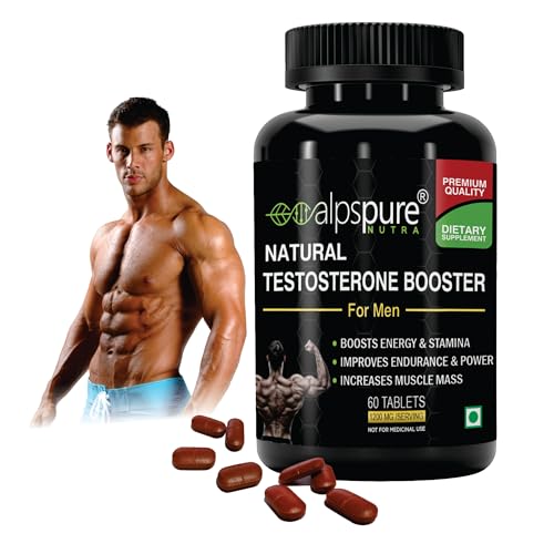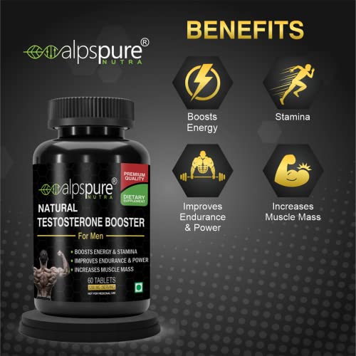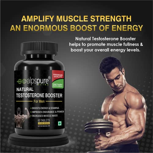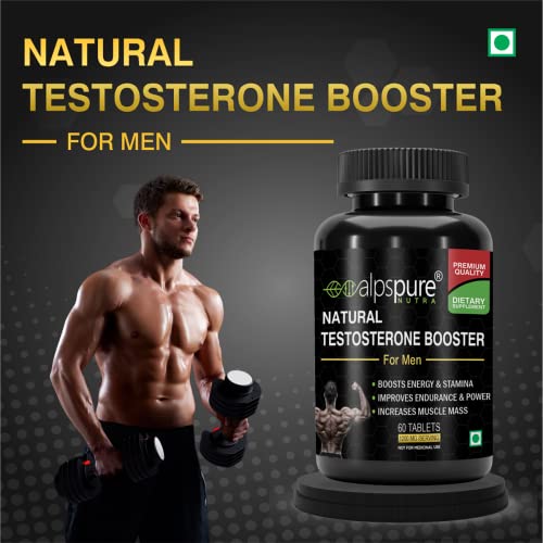 Alpspure Nutra Natural Testosterone Booster (60 Tablets) With 100% Herbal Ingredients | Dietary Supplement | Immunity Booster | Boosts Energy, Stamina & Muscle Growth for Men.