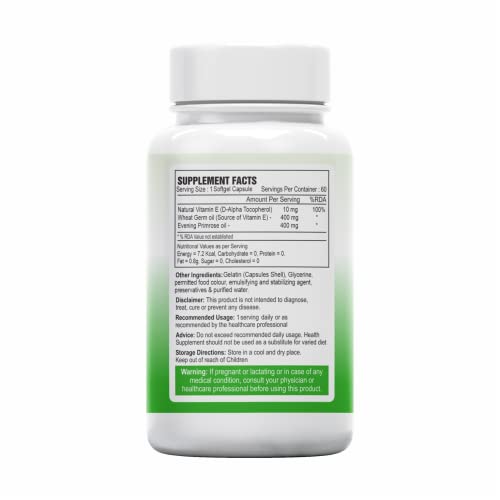 Natural Vitamin E with Evening Primrose oil and Wheat germ oil is a nutrient your body needs to support your immune system and help your cells to regenerate.