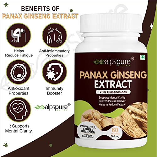 Each serving gives you 500 mg of panax ginseng extract standardized to 20% ginsenosides. From the trusted nutrition experts: alpspure nutra panax ginseng extract veg capsules are a product of dedication to quality consistency and scientific research to ma