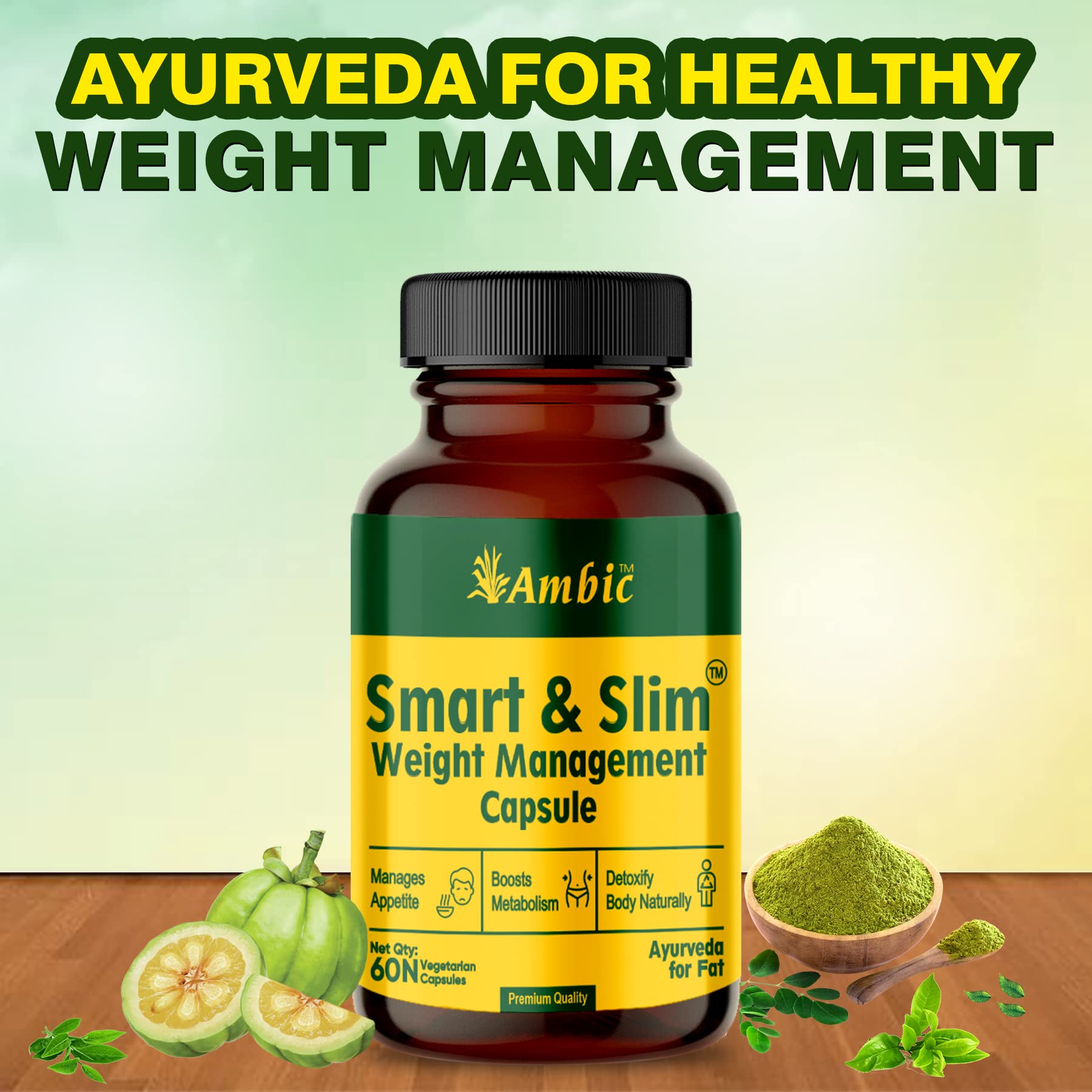 AMBIC SMART & SLIM Weight Loss Capsule I Ayurvedic Medicine for Healthy Weight Management | Garcinia Cambogia Medohar Guggulu for Belly Fat Hips & Thighs â 60 Veg Capsules