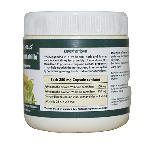 HERBAL HILLS Ashwagandhahills 250 Capsule Ayurvedic Ashwagandha Capsules (Withania somnifera)