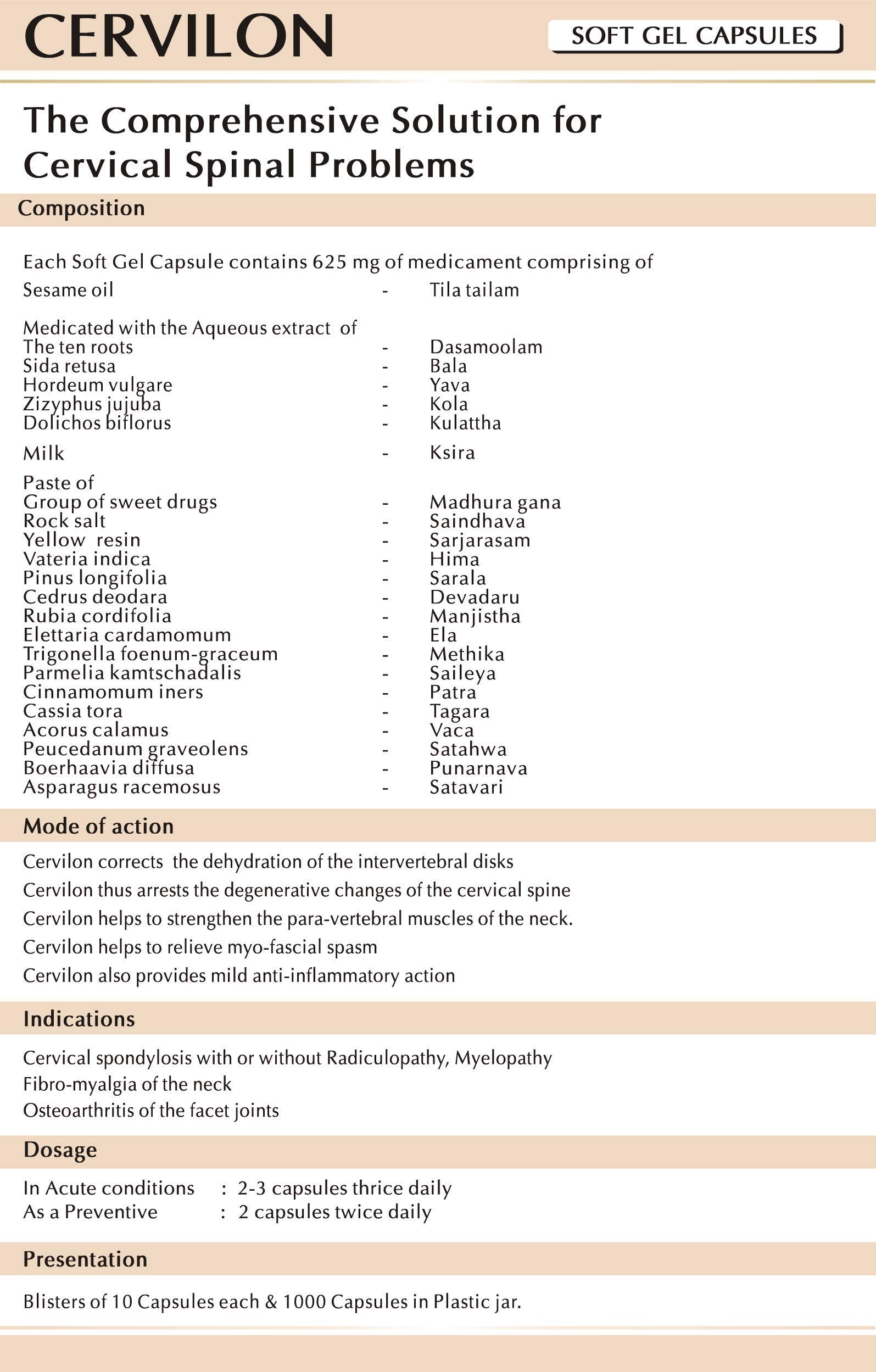 AVN Cervilon Soft Gel Capsules (Pack of 1) (90 Capsules) 0 Cervical spondylosis with or without Radiculpahy Myelopathy Fibro-myalgia of the neck Osteoarthritis of the facet joints