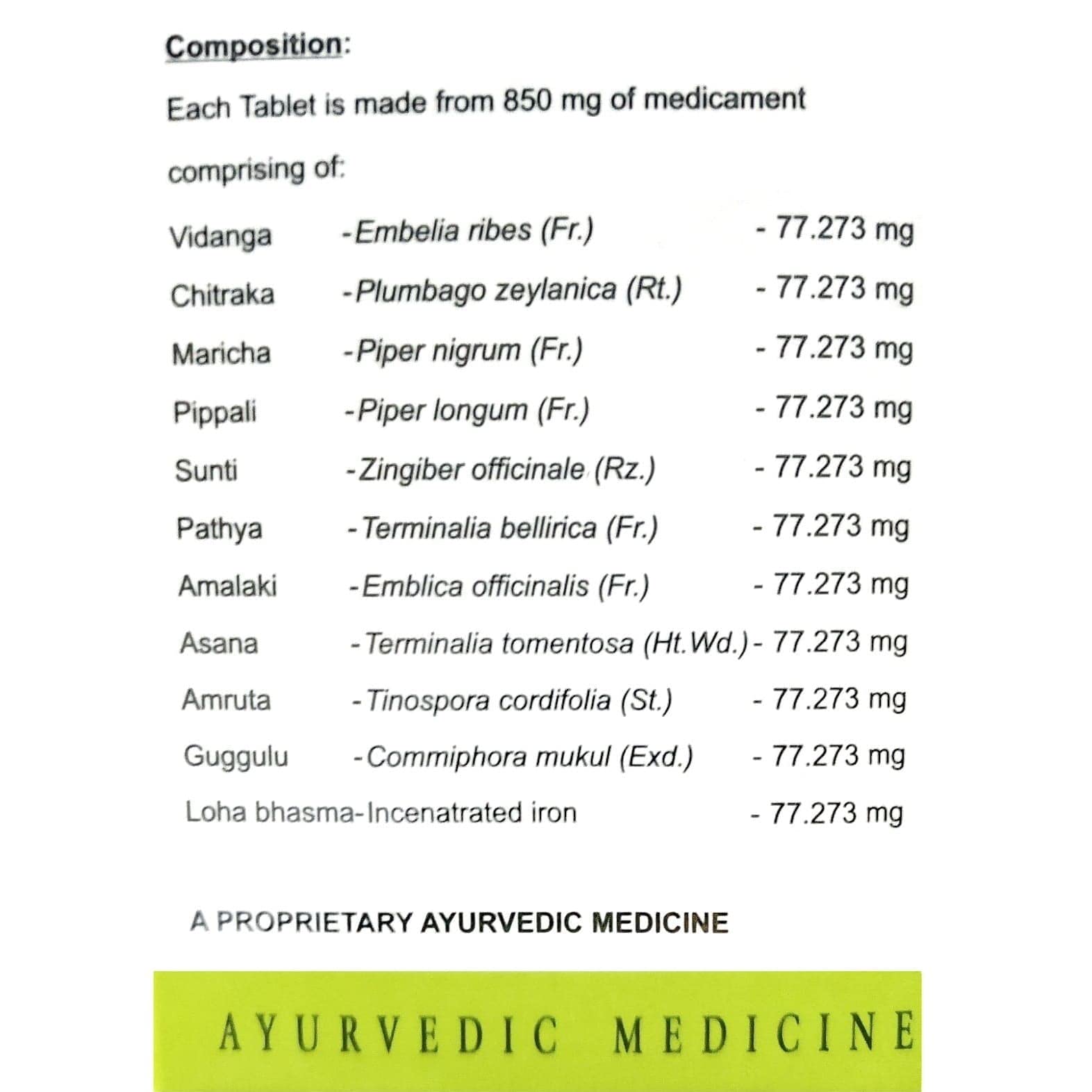 Dosage: 2-3 Tablets twice or thrice daily or as directed by the physician.