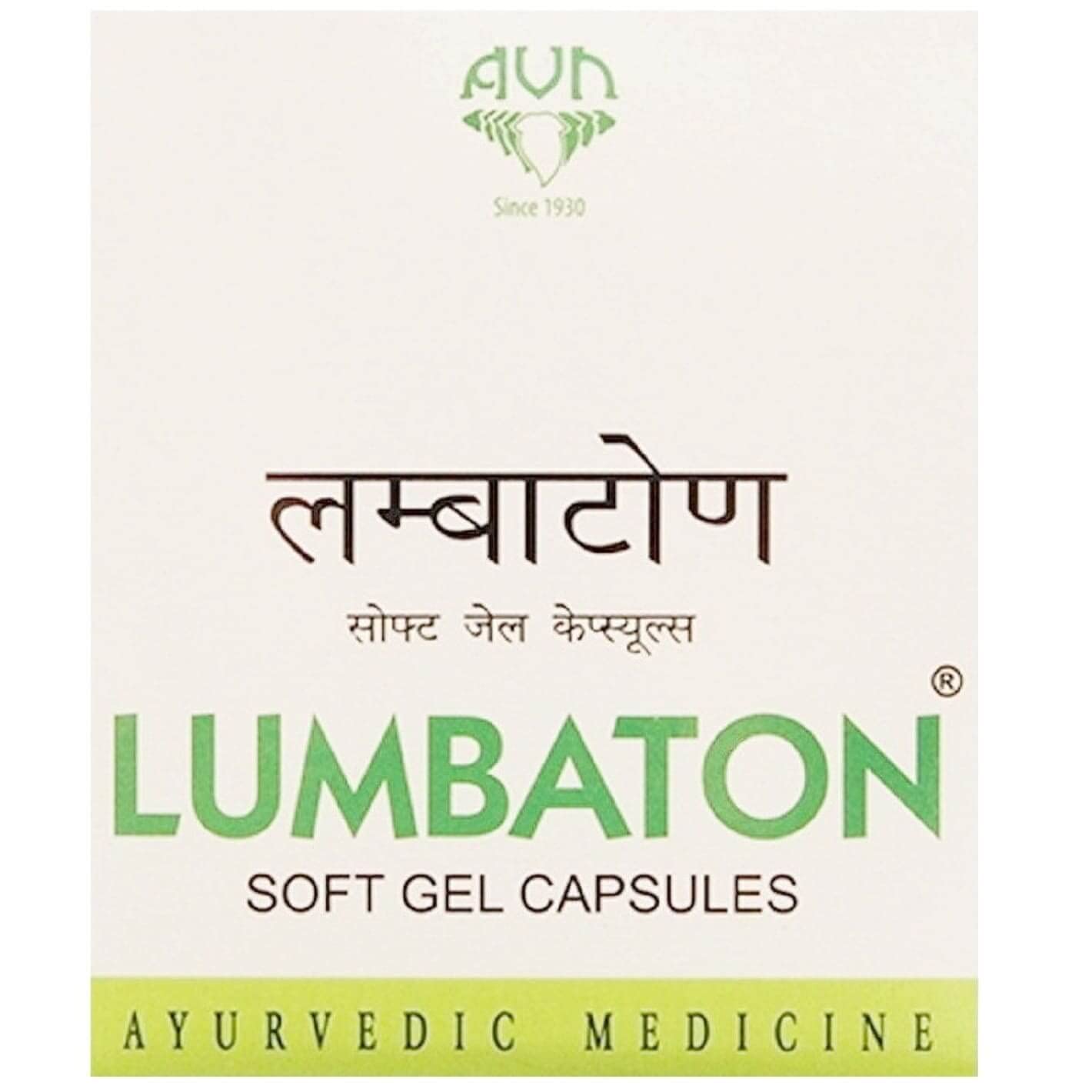 AVN Lumbaton Soft Gel Capsules (360 Capsules) (120 Capsules X 3). Indications: Lumbago Sciatica. Dosage: Curative: 2 Capsules 2-3 times daily after food; Preventive: 2 Capsules Once a day before food.