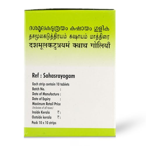 Carefully crafted from nature's finest ingredients and guided by ancient Ayurvedic wisdom Dasamoolakaduthrayam Kashayam Tablets from AVP (Coimbatore) Ltd. is diligently formulated to support the body in its fight against conditions affecting the respiratory system. Good respiratory health is vital for overall well-being. Allergies respiratory infections chronic conditions like Asthma Rhinitis and flu often cause breathing difficulties with cough and congestion. It is significant to identify the root cause and find out ways to tackle the issues. Dasamoolakaduthrayam Kashayam Tablets by The Arya Vaidya Pharmacy (Coimbatore) Ltd. is a potent combination of Dasamoola with the invigorating trio - Trikatu and Vasa all of which are beneficial in strengthening the respiratory muscles and airways. The formulation supports respiratory health and helps the body to fight against microbes and reduce inflammatory changes in the region. A modified form of traditional Dasamoolakaduthrayam Kashayam for easy consumption these tablets aid in relief from pain in the flanks associated with cough and restores optimal respiratory function. It helps clear airways by facilitating expectoration of phlegm and eases congestion and breathing difficulties in Asthma. With appropriate adjuvants the decoction tablet also aids relief in low back ache caused by vitiated Kapha and Vata doshas.