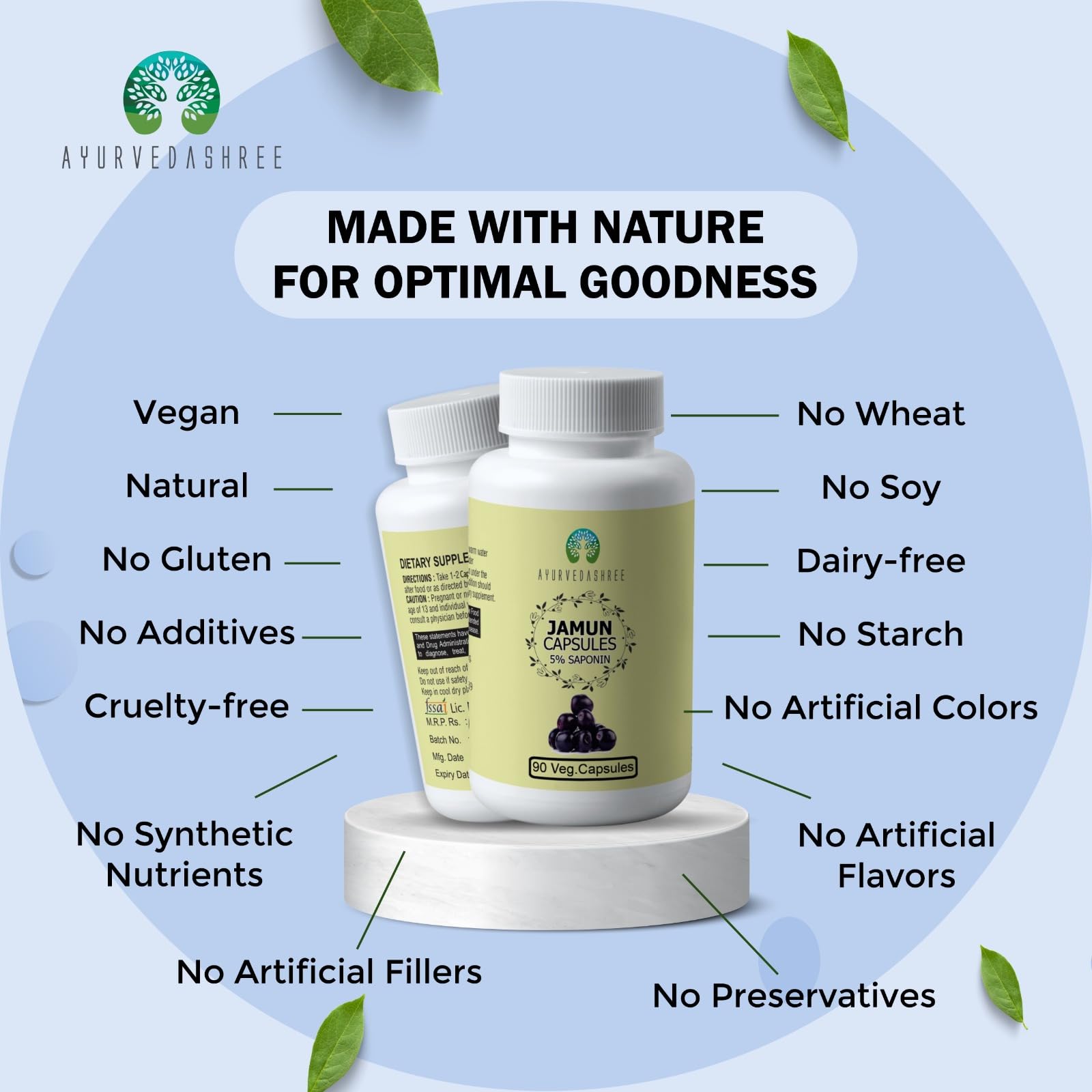 AYURVEDASHREE is Committed to bring you the quality products that you deserve. Our products cleaned and packed in the most hygienic conditions in food grade packaging. Jamun is loaded with Vitamin E C and Calcium Iron Magnesium Glucose Carbohydrates Fiber Proteins.