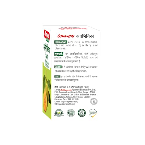 Amoebica Tablet manufactured by Baidyanath Ayurved after years of research. It is an effective remedy for amoebiasis.