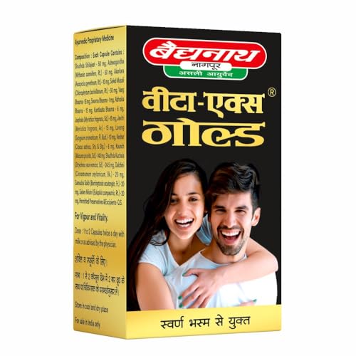 Baidyanath Vita-Ex Gold Plus is a unique formulation fortified with gold for sustained stamina and vitality. The capsules promote mens strength and activeness. It is a non-hormonal vitalizer cum tonic which helps restore energy vigor and stamina. Vita-Ex Gold Plus does not come with any diet restrictions.