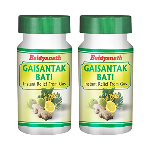 Baidyanath Gaisantak Bati - Instant Relief from Gas and Indigestion - 100 Tablets (Pack of 2)Baidyanath Gaisantak Bati is a traditional Ayurvedic formulation made from commonly known herbs known to provide quick relief from digestive distress like gas hyperacidity flatulence and bloating. It contains household herbs and spices like Ajwain Ginger Hing and Kala Namak that are also known to help elevate your immunity and energy levels. Consume 1 to 2 tabets twice a day post your meals or as directed by the Ayurvedic practioner.Baidyanath Vansaar Isabgol - Psyllium Husk Powder - 200gm | Effectively Relieves Constipation | Fibre Supplement For DigestionBaidyanath lsabgol (also known as Psyllium husk) is a natural vegetable product derived from the upper coating of Plantago Ovata seeds after through milling sieving and winnowing. Isabgol helps in maintaining a healthy digestive tract and relieves constipation and digestive distress. Baidyanath uses specially selected lsabgol seeds to ensure only the best quality psyllium husk is produced. It is a rich source of fibre and is gluten-free.