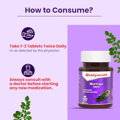 Baidyanath Moringa Tablets 60 Tablets (Pack of 1) –Drumstick Leaf Tablets| Helpful in Overall Health and Wellness and Gut Balance(60 Tablets)
