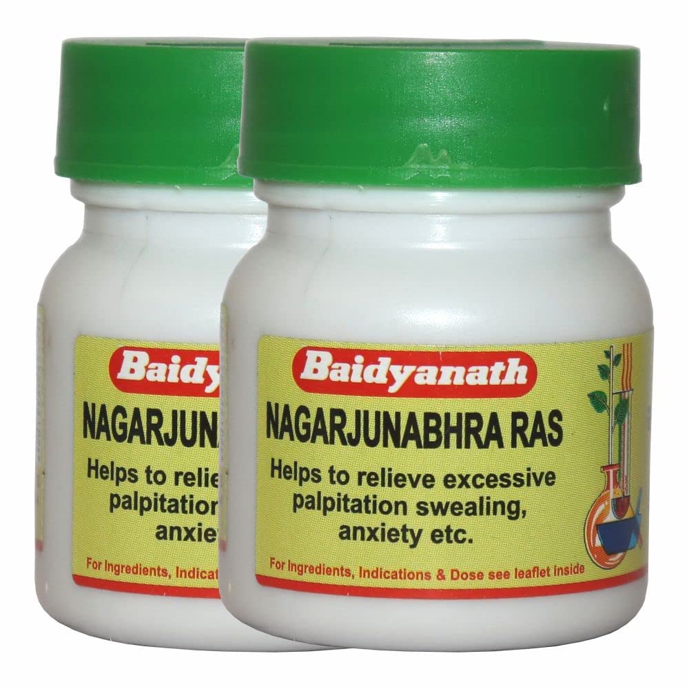 Baidyanath Nagarjunabhra Ras Tablets are a classical Ayurvedic herbal supplement formulated using the ancient wisdom of Ayurveda. This supplement is crafted with Abhrak Bhasma and Arjuna bark both known for their beneficial properties.Nagarjunabhra Ras is traditionally used to support digestive comfort and overall wellness. It is also known in Ayurveda for helping to maintain the balance of Vata Pitta and Kapha doshas promoting holistic health.This supplement is made with natural ingredients ensuring that it aligns with the principles of Ayurveda. It is recommended to consult a healthcare professional to determine the appropriate dosage and use.Incorporate Baidyanath Nagarjunabhra Ras Tablets into your daily wellness routine to support your journey towards natural health and balance.