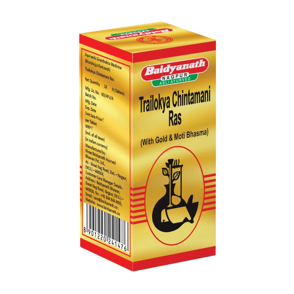 Baidyanath Trailokya Chintamani Ras with Gold & Moti Bhasma -10 Tablets