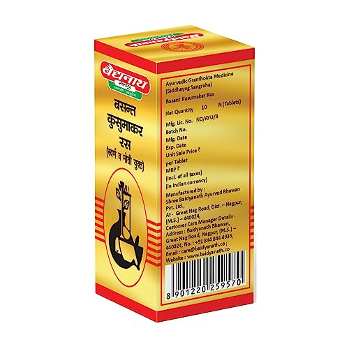 Baidyanath Vasant Kusumakar Ras is a herbal formulation useful in urinary problem and high blood sugar. It is famous for diabetes mellitus in which it is effective for normalizing and stabilizing the blood glucose level