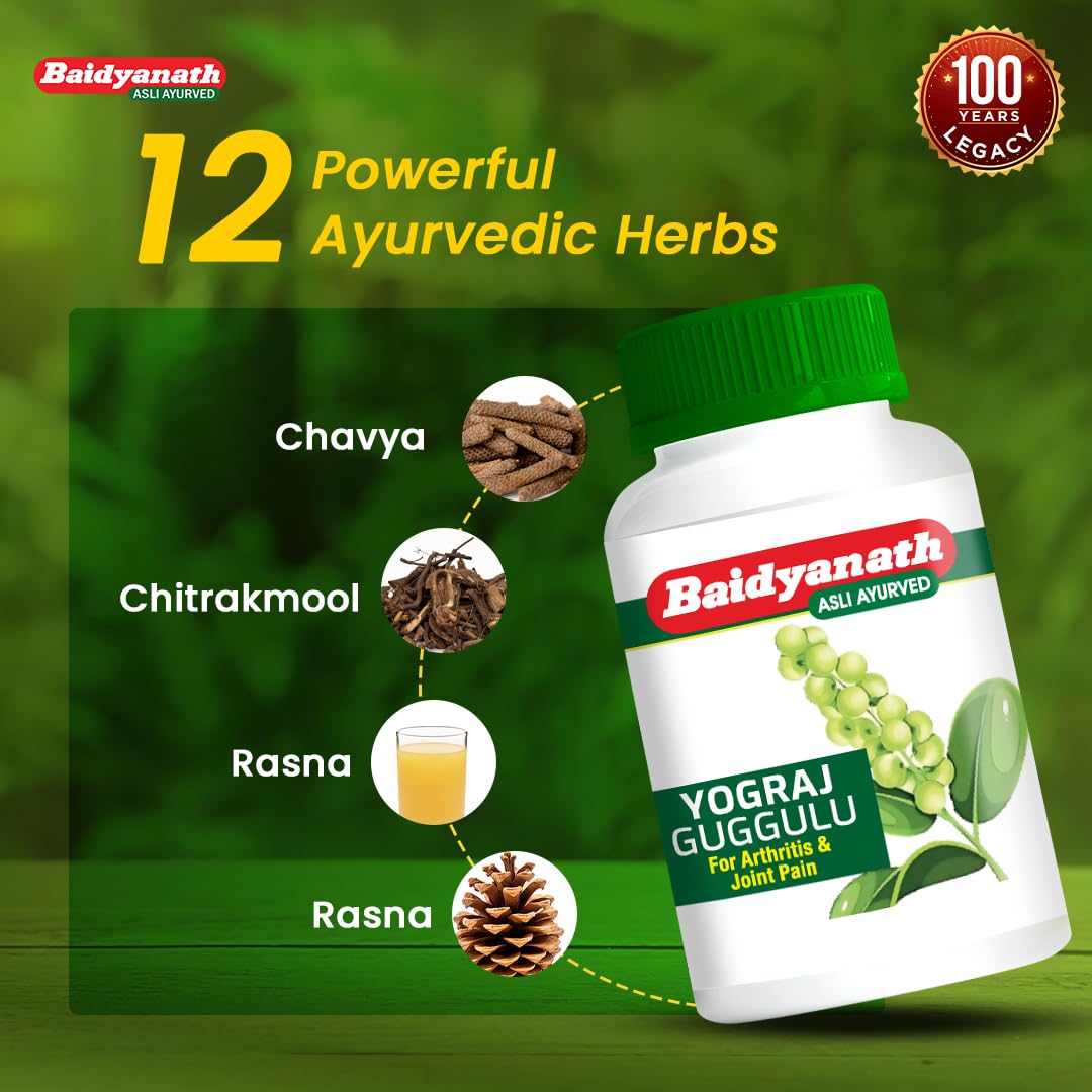 Baidyanath Yograj Guggulu is an Ayurvedic formulation made with a selection of 26 herbs including Chitrakmool Sudh Guggulu and Rasna. This blend is prepared using traditional Ayurvedic practices. Manufactured in a GMP-certified facility it is developed with years of Ayurvedic knowledge. Suitable for inclusion in a daily wellness routine.