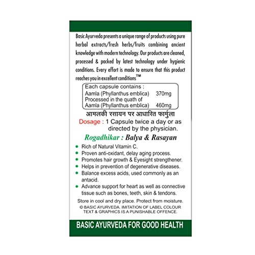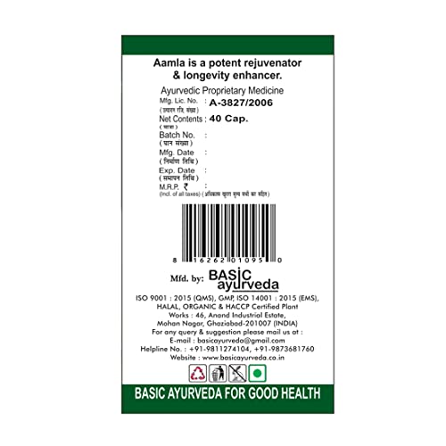 BASIC AYURVEDA Aamla 40 Capsules (Gooseberry Powder) Pack Of 6 |