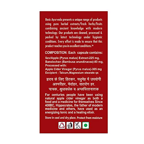 • Basic Ayurveda Apple Cider Vinegar Capsule is a herbal ayurvedic formulation available in the form of capsules. It helps to balance the blood sugar levels and also maintains the blood pH levels.