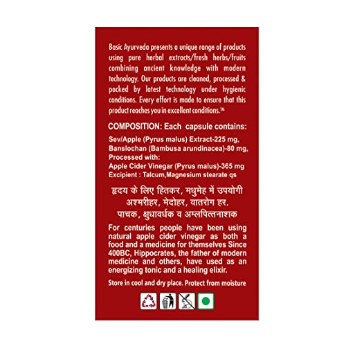 • Basic Ayurveda Apple Cider Vinegar Capsule is a herbal ayurvedic formulation available in the form of capsules. It helps to balance the blood sugar levels and also maintains the blood pH levels.