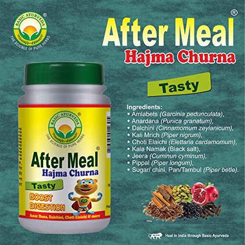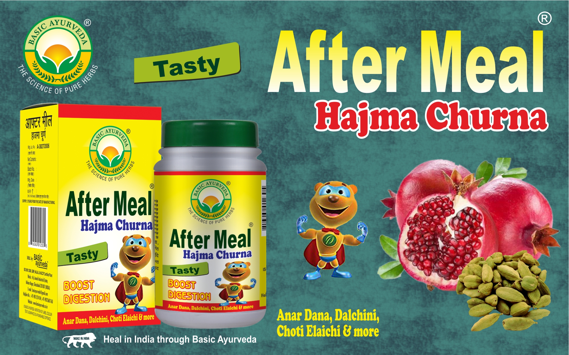 • After Meal Hajma Churna is a special testy digestive product launched by Basic Ayurveda. This churna is basically an ayurvedic digestive stimulant that helps to support healthy stomach function food absorption general weakness as well as gastric problem.