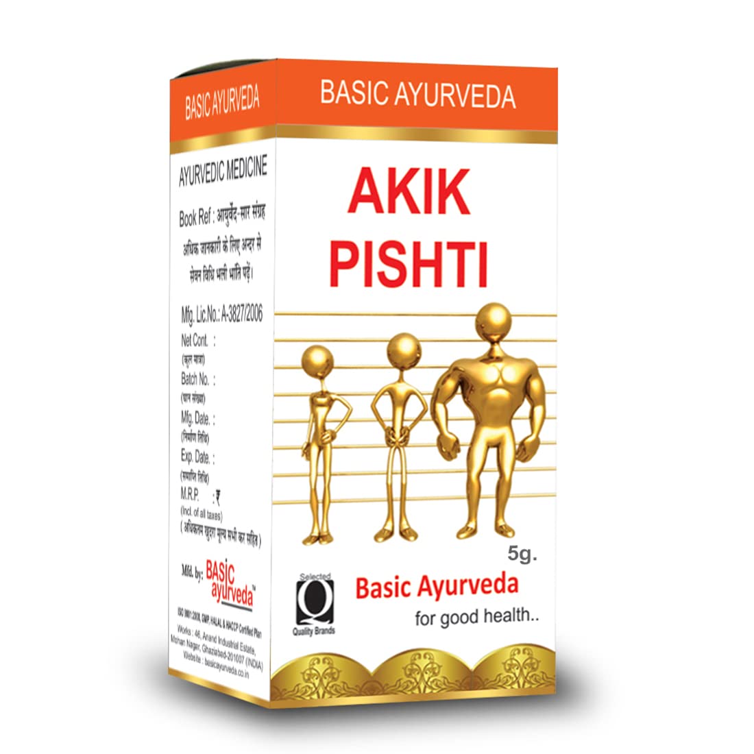 • Basic Ayurveda's Akik Pishti is a mineral-based Ayurvedic formulation that comes in powder form. Helpful for heart-related problems cough and improved health functions. It is the same as Akik Bhasma.