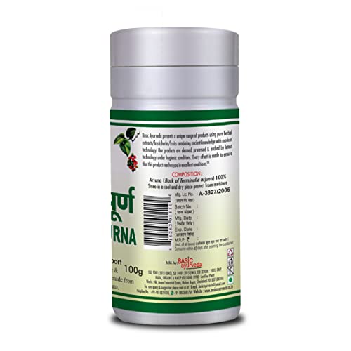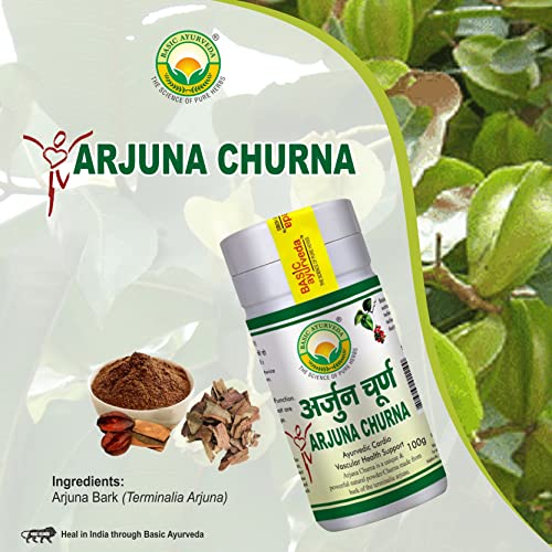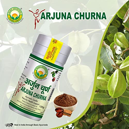 BASIC AYURVEDA Arjuna Bark Churna 100gm | Ayurvedic Supplements for Heart Health | A Powerful Blend of Natural Ingredients Extra Strength Formula