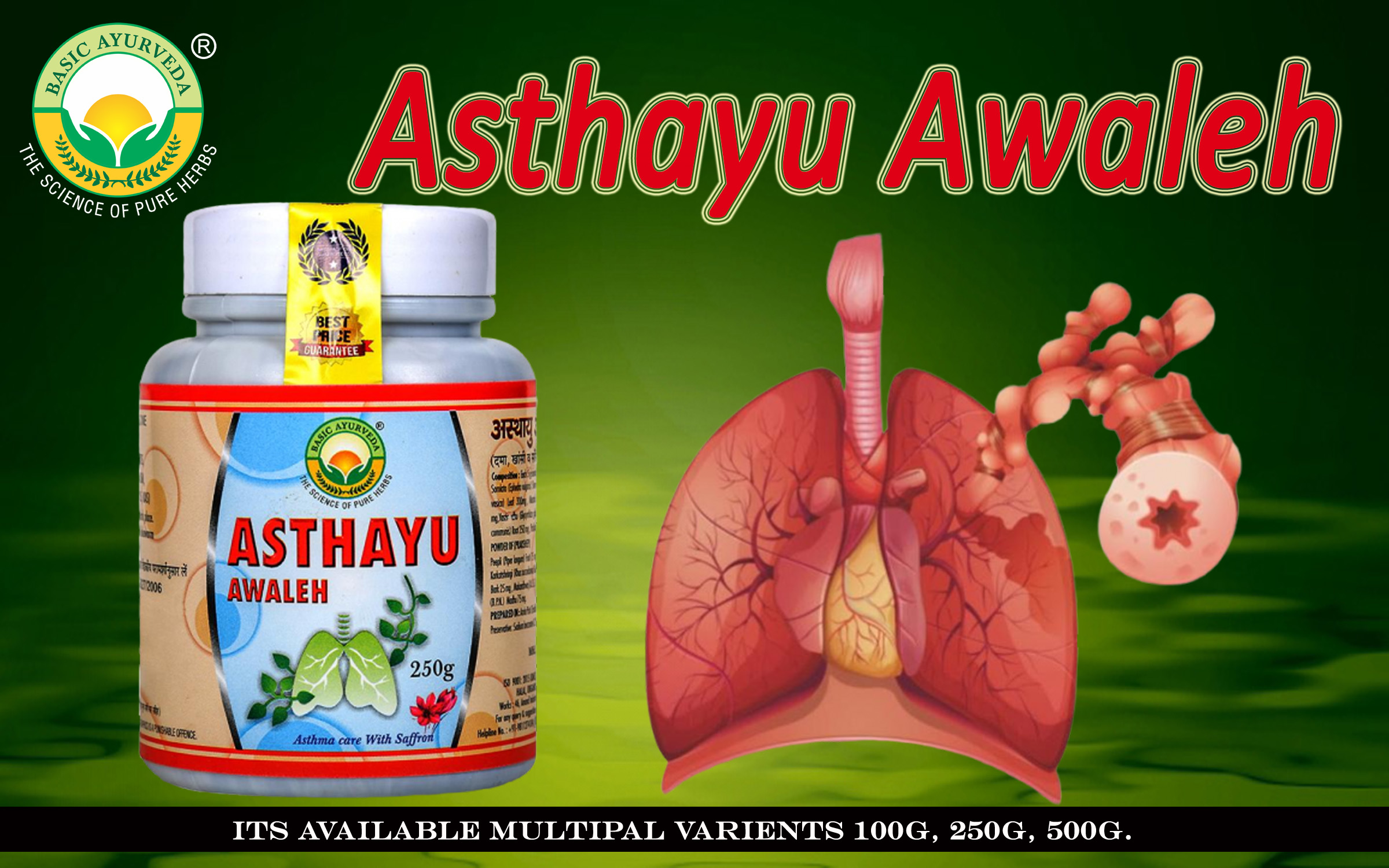 • Basic Ayurveda Asthayu Awaleh is a blend of ayurvedic herbs that provide ease for all types of respiratory conditions. The herbs present in the Asthayu Awaleh are effective in managing the common cold and stuffy nose.