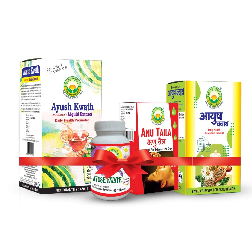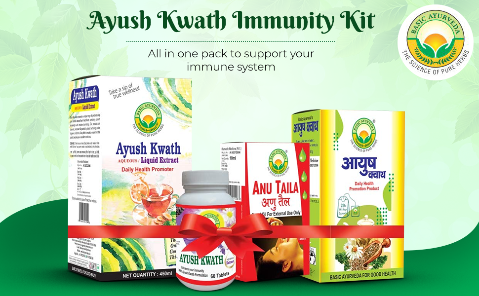 • Basic Ayurveda Ayush Kwath kadha liquid extract tablet tea bag and Anu Taila is an ayurvedic unique formulation and it is a great combination for helping to boost immunity.