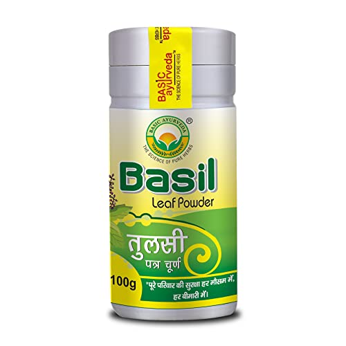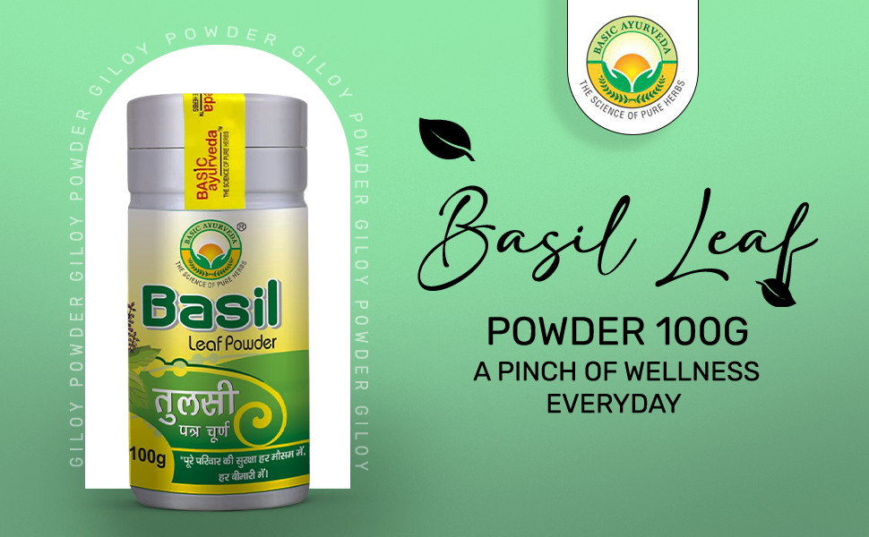 BASIC AYURVEDA Basil (Tulsi) Leaf Powder 100gm Pack Of 4 | Organic Herbal Churna | Ayurvedic Supplement For Boosts Immunity, Digestion & Blood Purifier | A Powerful Blend Of Natural Ingredients