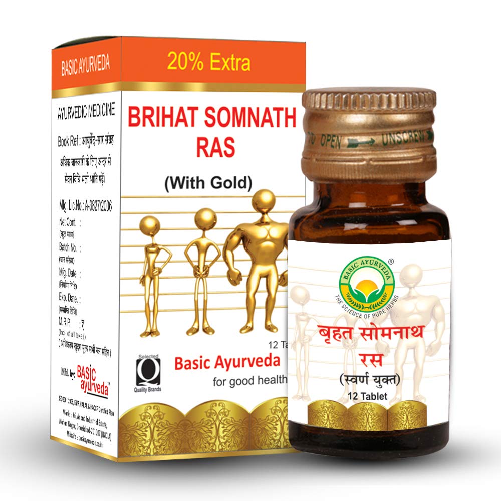 Basic Ayurveda Brihat Somnath Ras with Gold 30 Tablets | Herbal Formula for General Wellness & Vitality