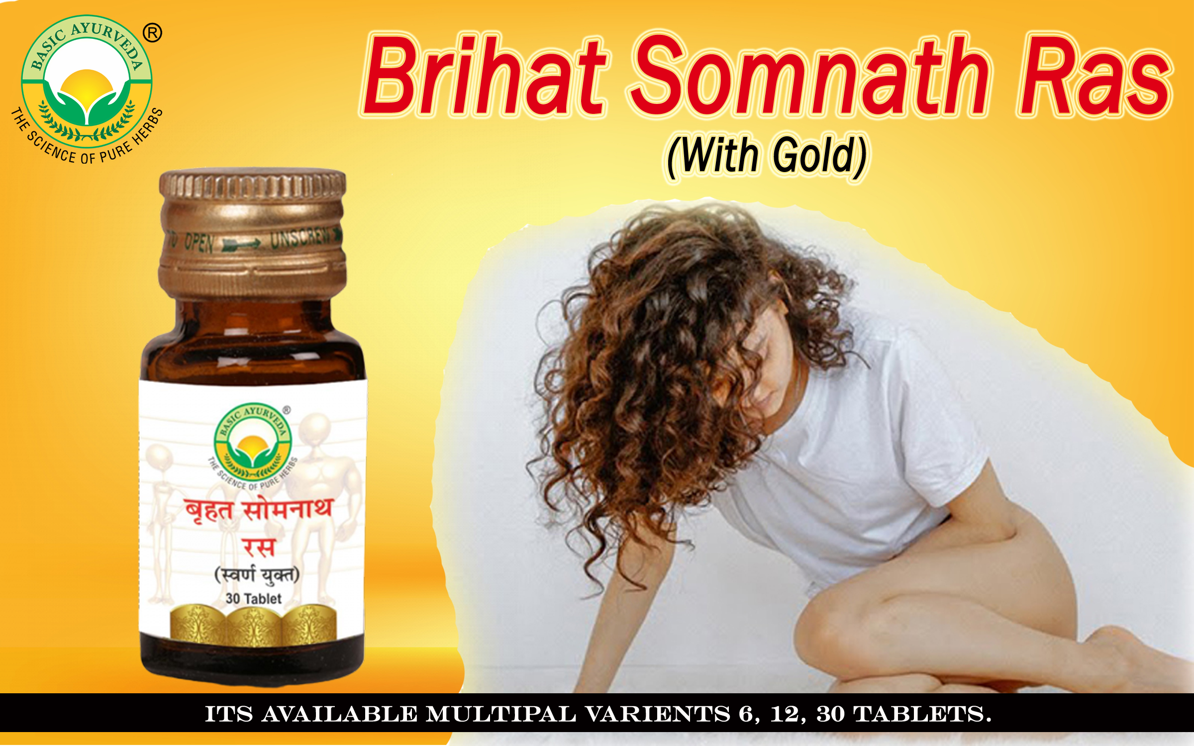• Basic Ayurveda's Brihat Somnath Ras is an Ayurvedic with an herbal and mineral formulation in tablet form. It is used for frequent urination problems and female internal health problems.