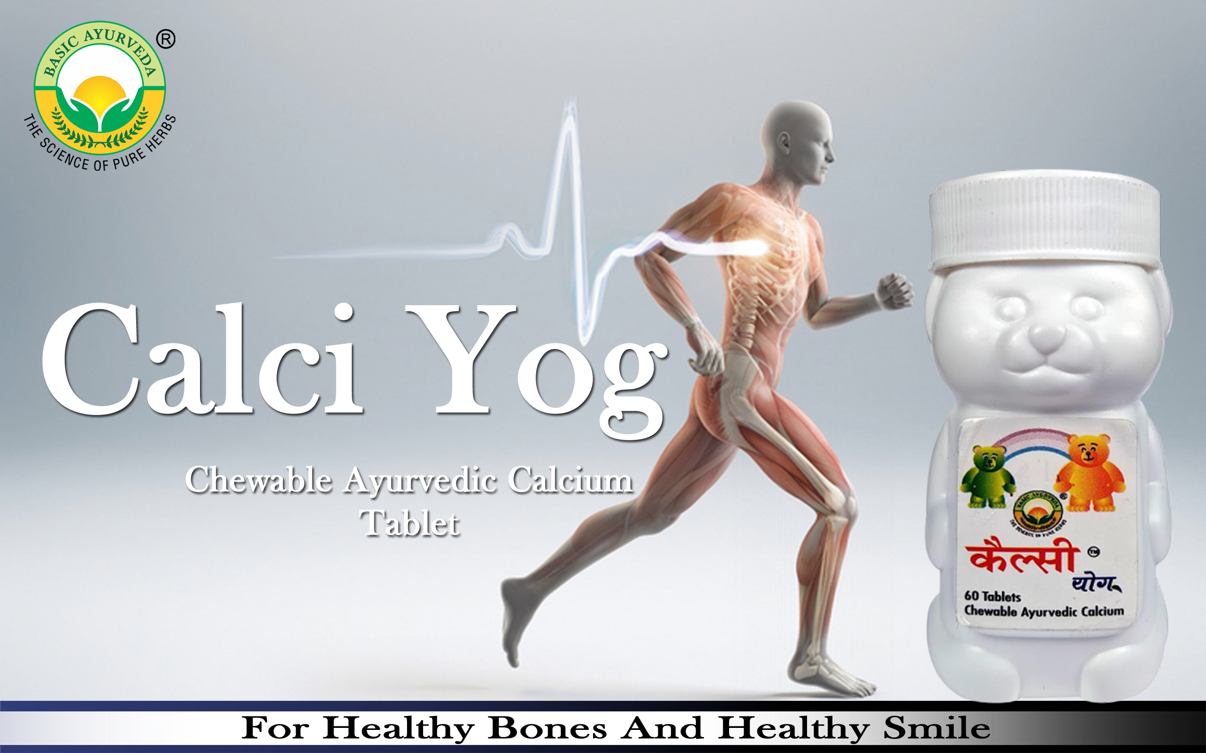 • Basic Ayurveda Calci Yog chewable ayurvedic tablet is a calcium dietary supplement used in the maintenance of strong bones.