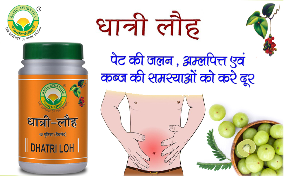 • Basic Ayurveda Dhatri Loh is an Ayurvedic formulation in tablet form. It helps the whole passage along which food passes through the body from mouth to anus. It includes the esophagus stomach and intestines.