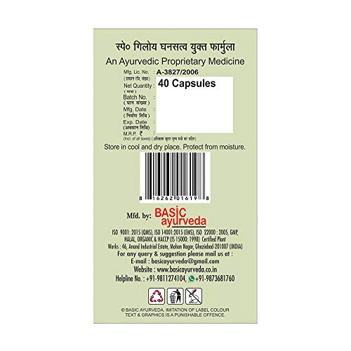 • Basic Ayurveda Giloy capsules with all the goodness of nature come in a 40 Capsules pack and are a GMP-certified product that is safe to consume daily.