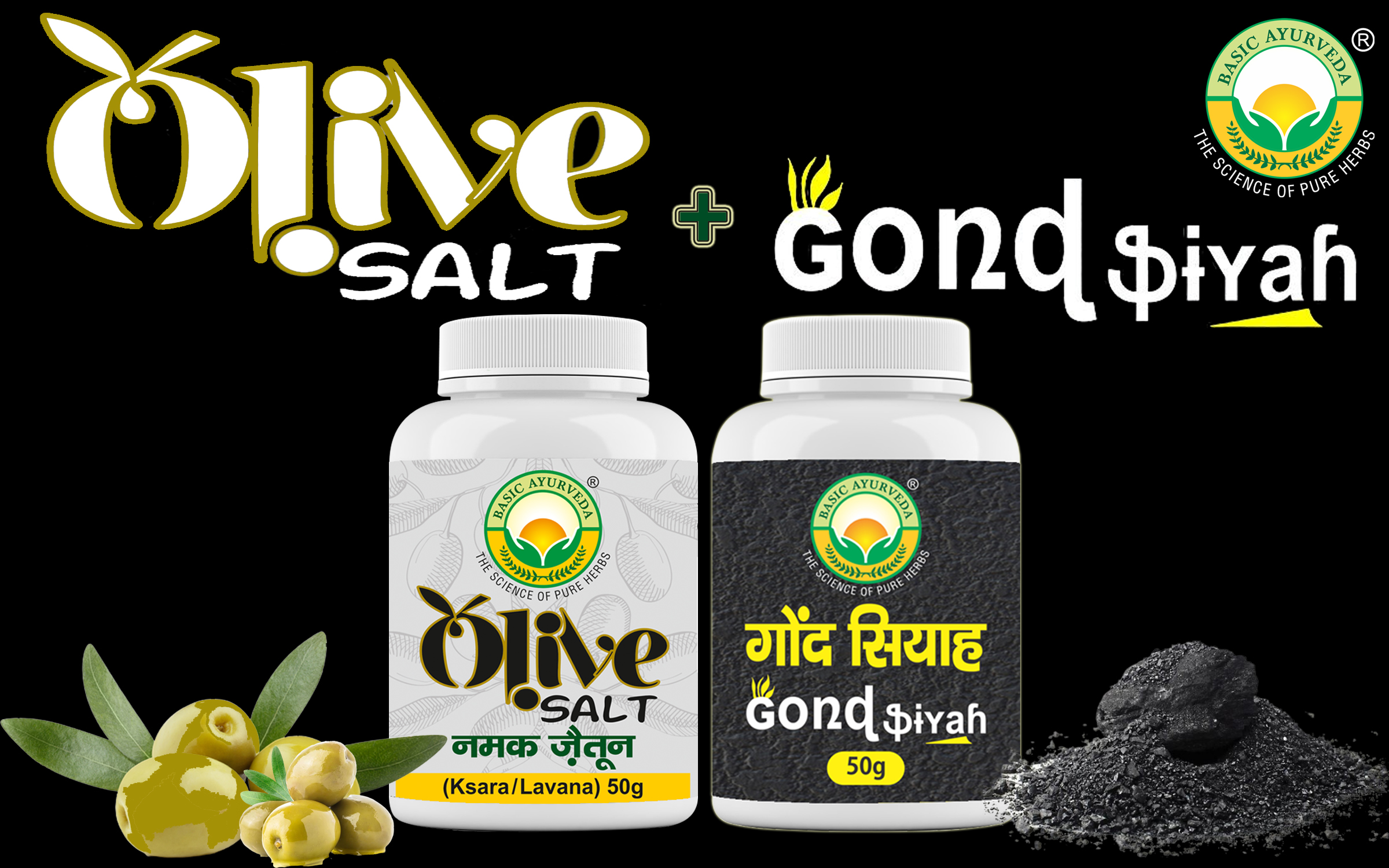 BASIC AYURVEDA Gond Siyah 50g (Kala Gond) With Olive Salt 50g (Zaitun Ka Namak) | Best Helpful For Boost Immunity Combo Pack |