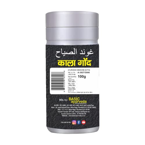 Basic Ayurveda Gond Siyah - ( 100Gm ) Plant-Based Product Renowned For Its Ability To Alleviate Joint Pain | Black Gum | Pure Jadibooti | Effective Solution For Enhancing Mobility And Overall Well-Being- Kala Gond| For All Kinds Of Bones Pain | Fast Recov