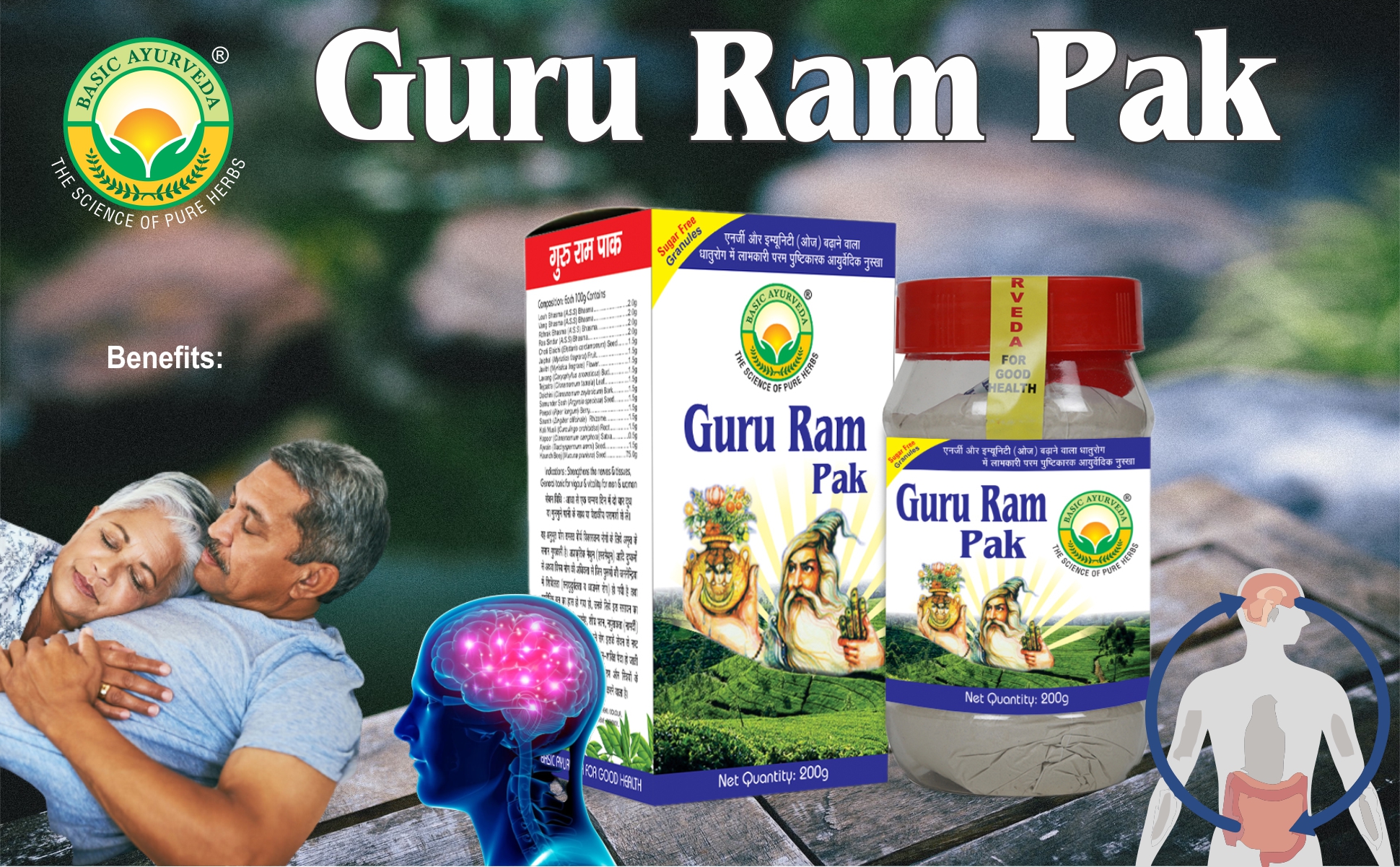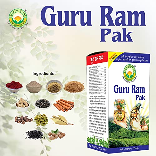 • Basic Ayurveda Guru Ram Pak Granules is a herbal classical ayurvedic formulation accurately composed that is available in the form of granules and is mainly useful for metal health which increases energy and immunity oz.
