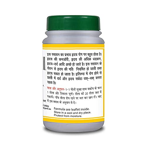 • It is used in the weakness of the heart high heartbeat heart pain etc. This tablet contains a heavy metal ingredient hence should only be taken under strict ayurvedic supervision.