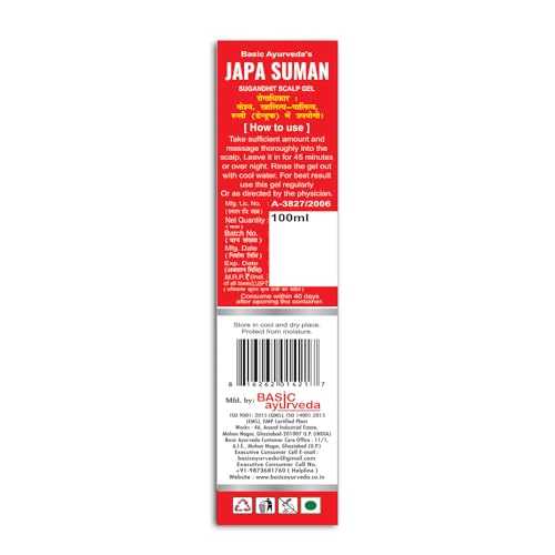 Basic Ayurveda japa suman sugandhit scalp gel 100ml ayurvedic recipe hair growth, hair fall, dandruff 100% botanical extract