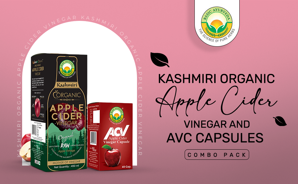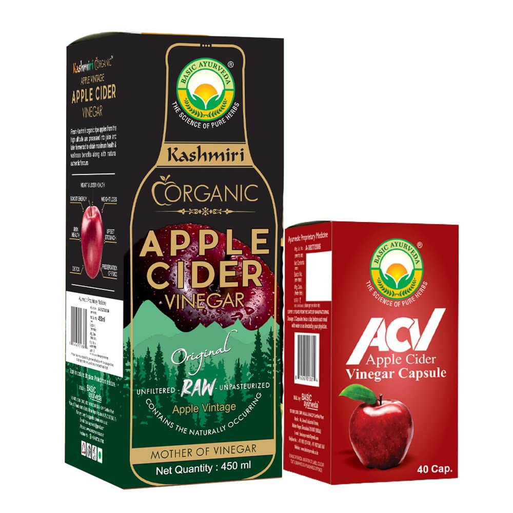 Basic Ayurveda Kashmiri Organic Apple Cider Vinegar – 450ml + ACV 40 Capsules | Detox & Weight Management Combo
