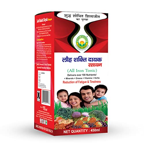 BASIC AYURVEDA Loh Shakti Dayak Rasayan 450 Ml | Ayurvedic Iron Tonic For Energy Booster | A Powerful Blend Of Ingredients Extra Strength Formula