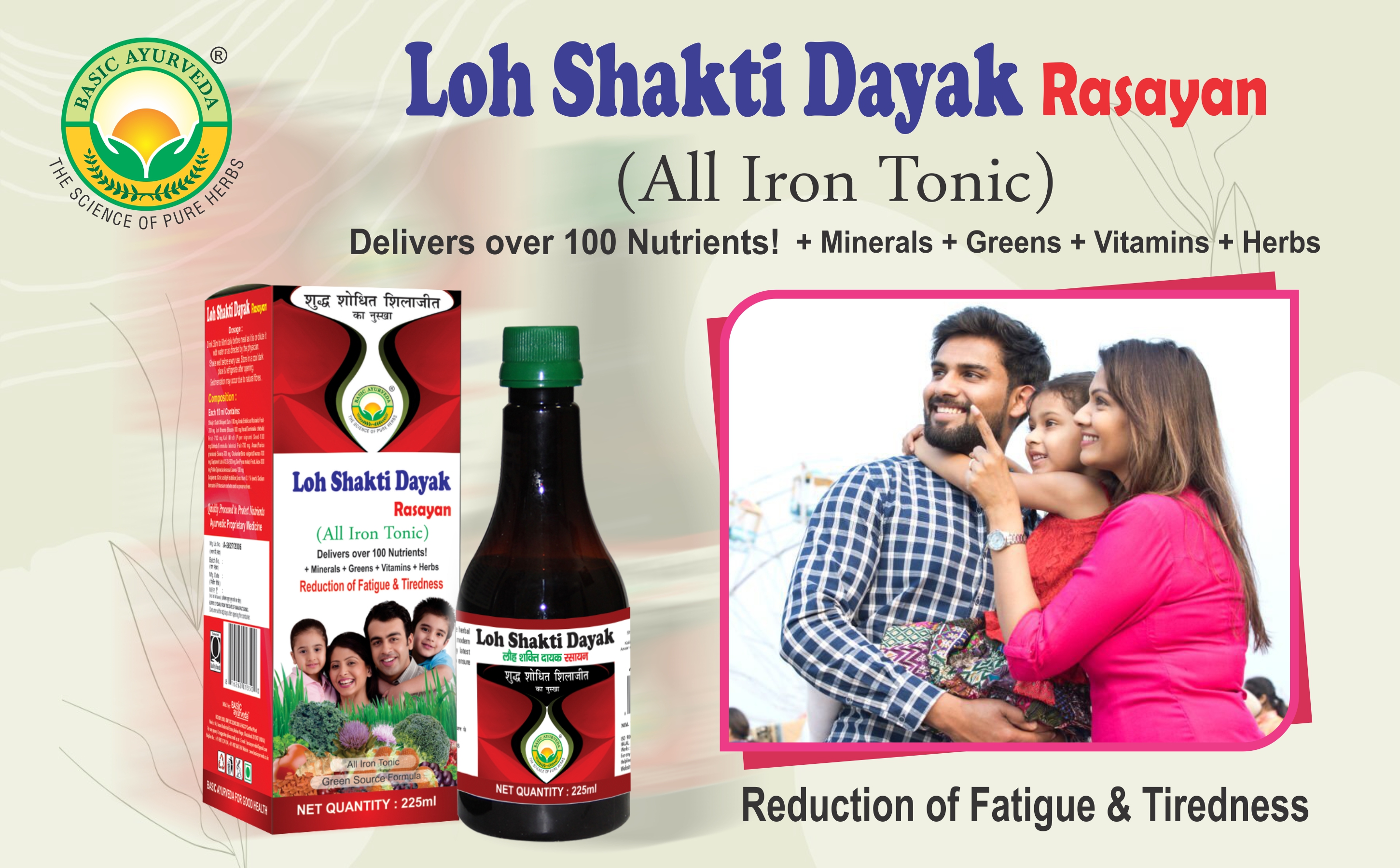 • Basic Ayurveda Loh Shakti Dayak Rasayan is a combination of many prominent minerals green vegetables vitamins and herbs. It is a green source formula for anemia or pandu roga.