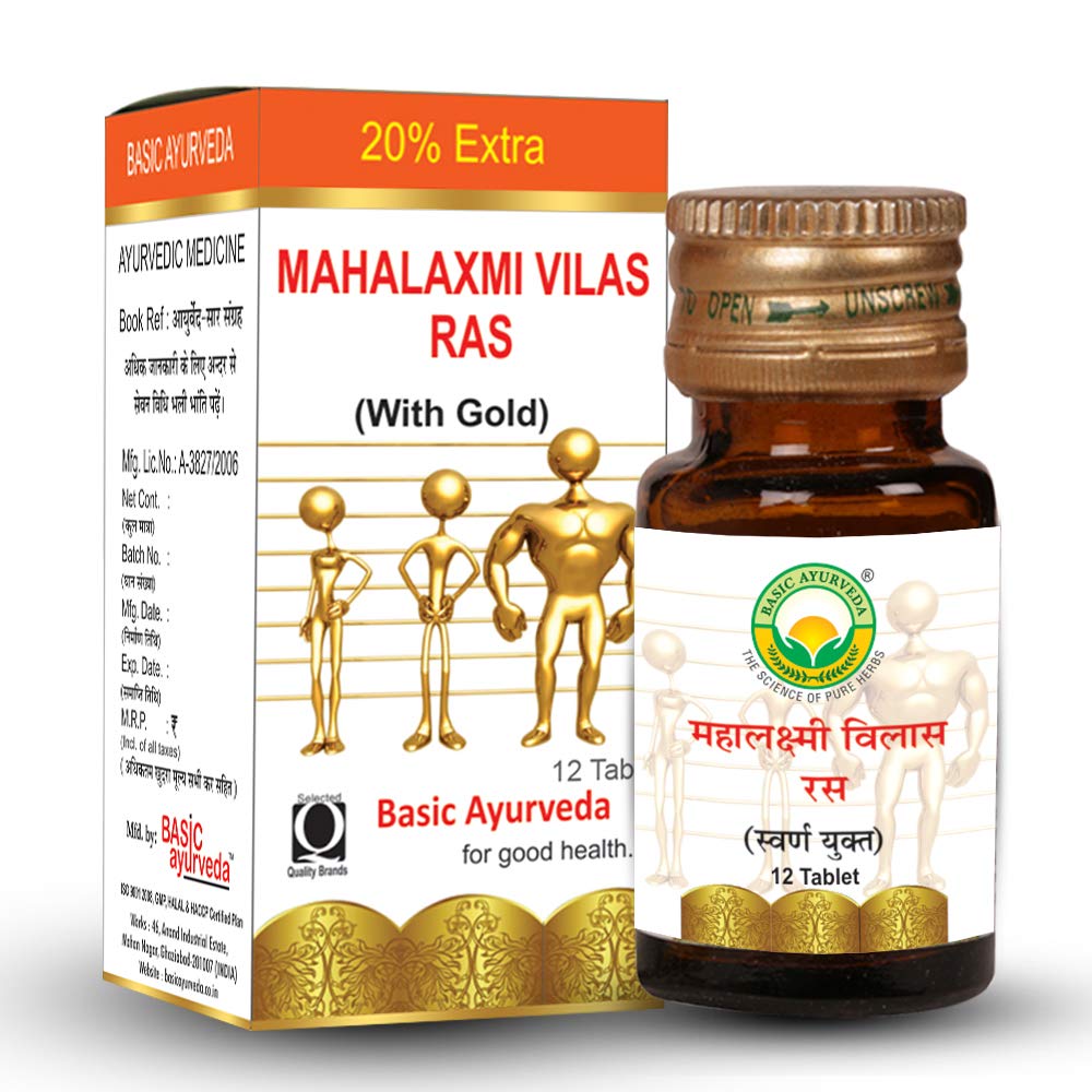 Basic Ayurveda Mahalaxmi Vilas Ras with Gold 12 Tablets Pack of 3 | Respiratory Support for Cough & Throat Relief