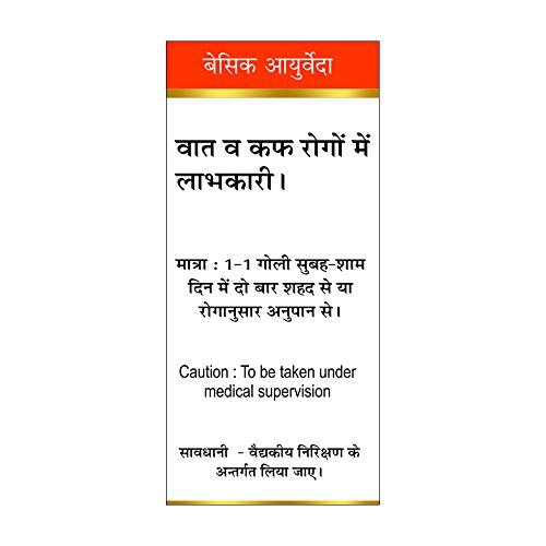• Direction for use: It is recommended to take 1-1 tablet morning and evening twice in day or according to problems or as directed by physician. It is suggested to administer Mahalaxmi Vilas Ras with Honey for better absorption and efficiency.