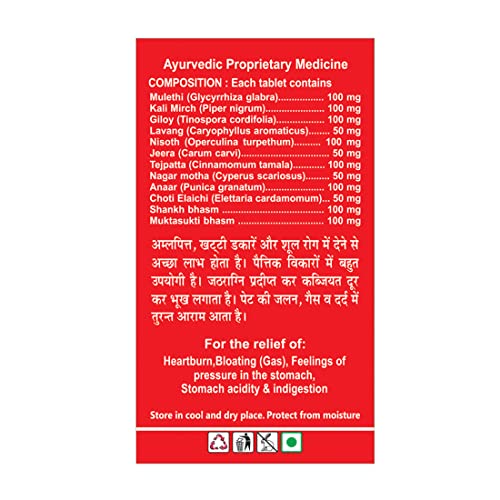 • This product is appreciated for its hygienic formulation long shelf life airtight packing purity and high effectiveness. Dosage: 1-2 tablets two to three times a day preferably with warm water or as directed by the physician.