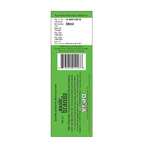 • Direction for use: It is recommended to take 1-2 drops in a glass of Water/Tea or as directed by the physician. Always adhere to the dosage recommended by the ayurvedic doctor or healthcare expert.