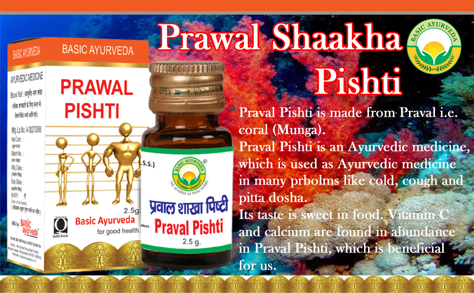 • Basic Ayurveda Praval Pishti is an ayurvedic herbal formulation in powder form that acts as used for cold cough and pitta dosha.