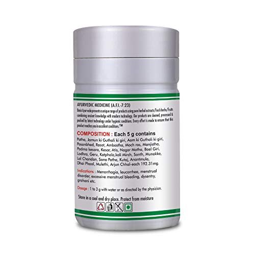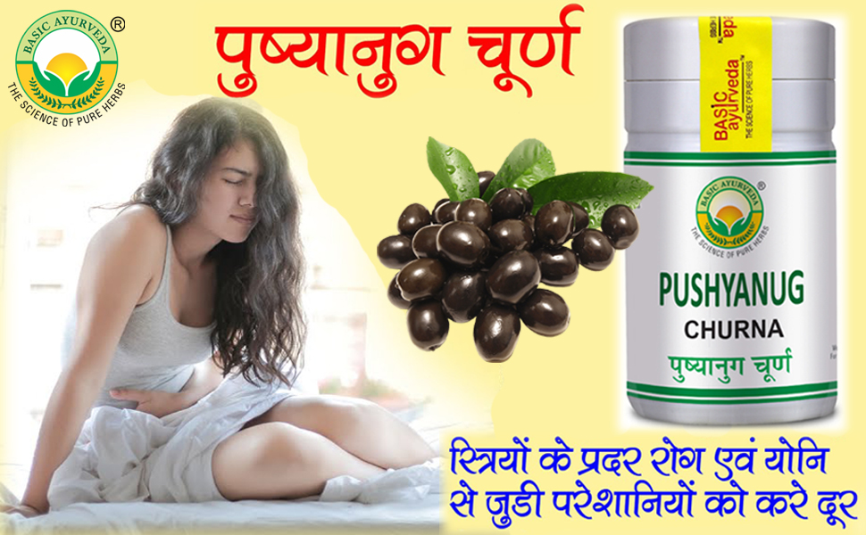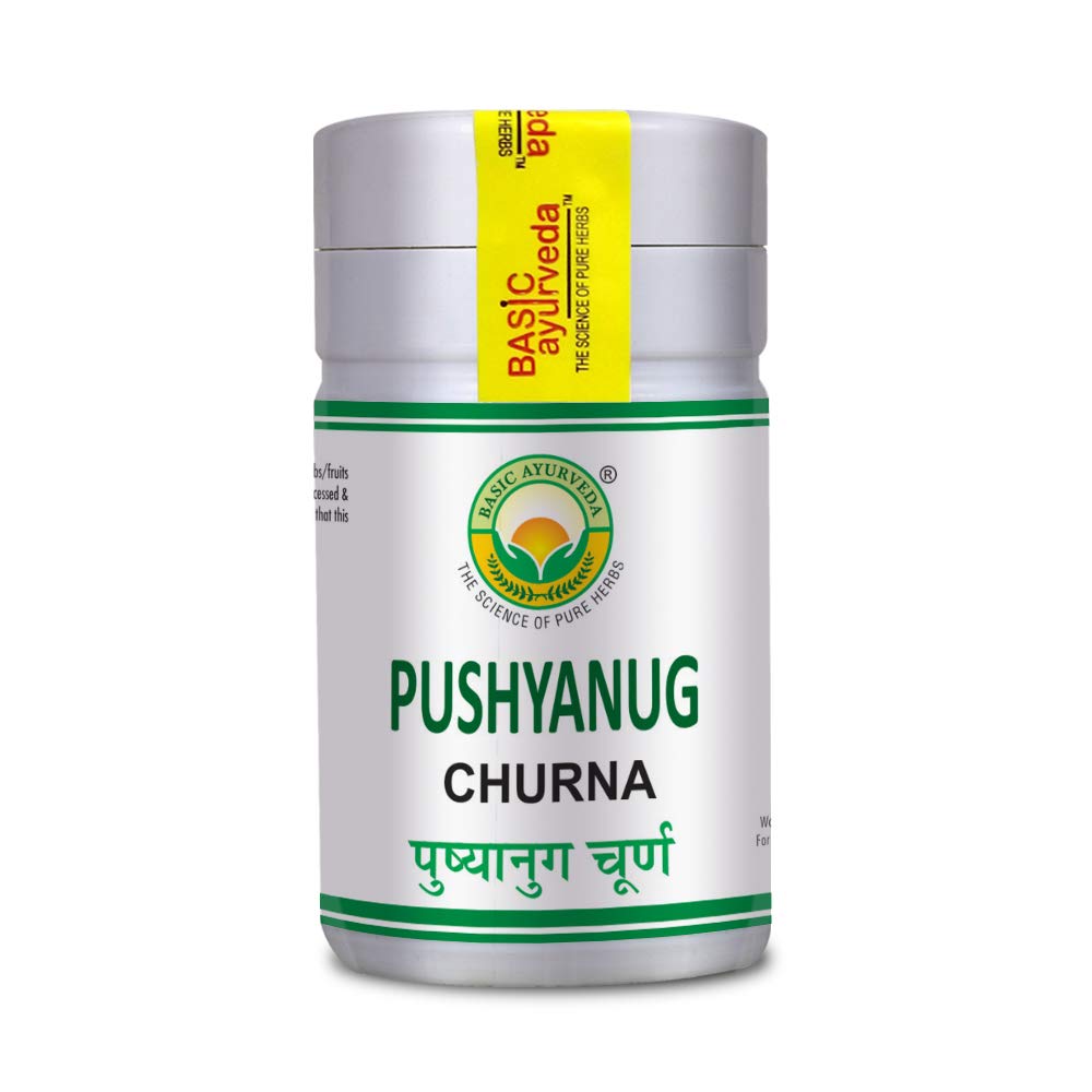 • Basic Ayurveda Pushyanug churna is a herbal formulation available in the form of a powder that helps in the management of cough and other respiratory health and also women's health.