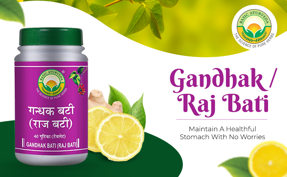 • Raj Gandhak Bati is a classical Ayurvedic Tablet for various digestive system-related problems. Gandhak Raj Bati has Deepan (improving appetite) and Pachan (digesting) properties.