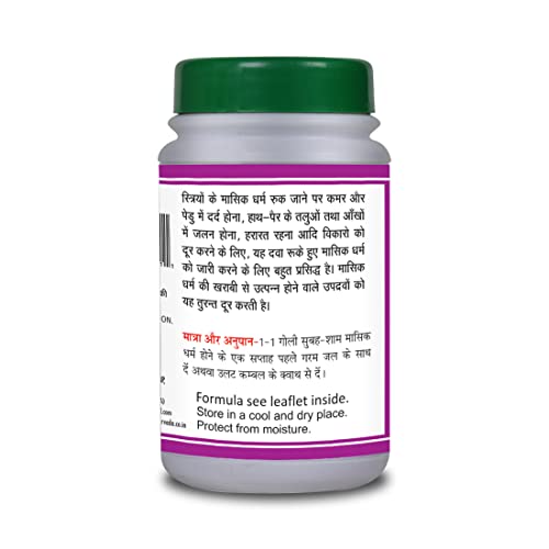 • Direction for use: 1-1 tablet morning and evening one week before period with lukewarm water or Ulat Kambal kwath. Always adhere to the dosage recommended by the ayurvedic doctor or healthcare expert. Using the tablet by chewing or grinding increases the